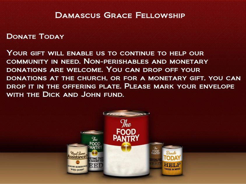 Our Food Bank is opened every third Saturday of the month from 1-1:30 p.m.